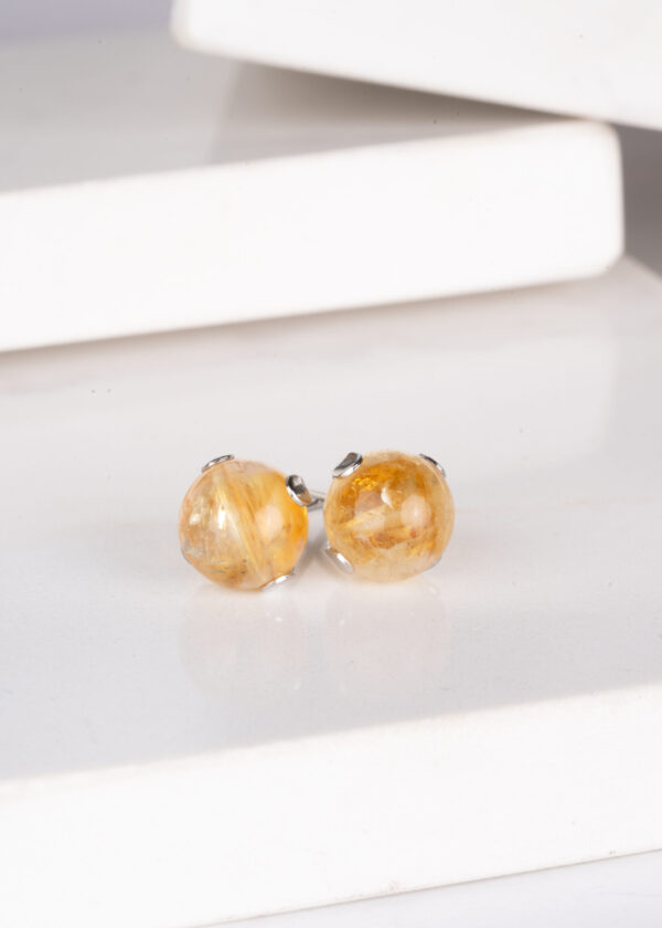 Oval Sitrin Doğal Taş Gümüş Küpe