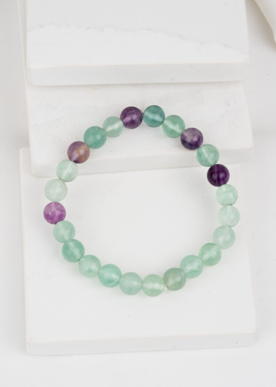 🔮 8 mm doğal florit taşlarıyla hazırlanmış bu Bileklik elastik yapısıyla her bileğe uyum sağlar.