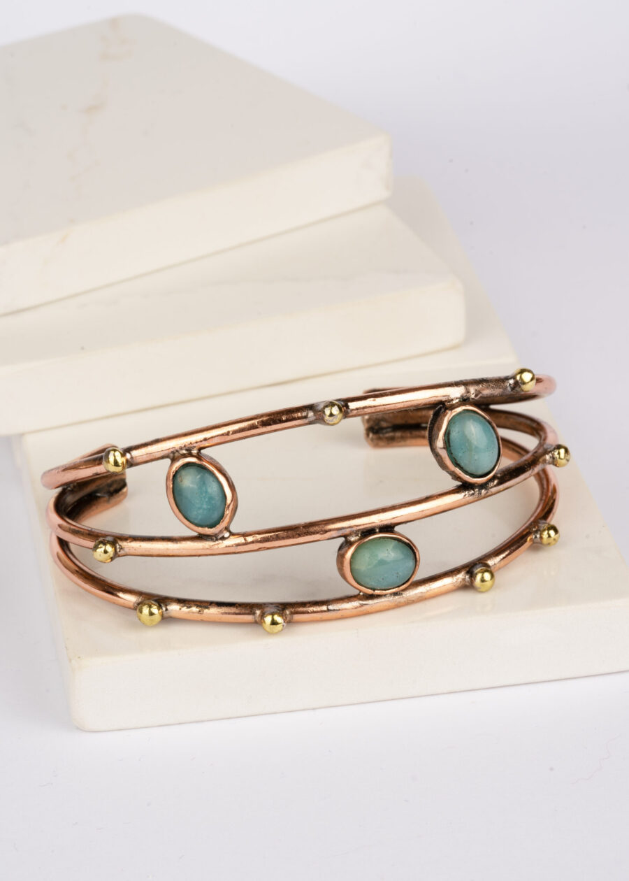 Akik Doğal Taşlı Bakır Bileklik