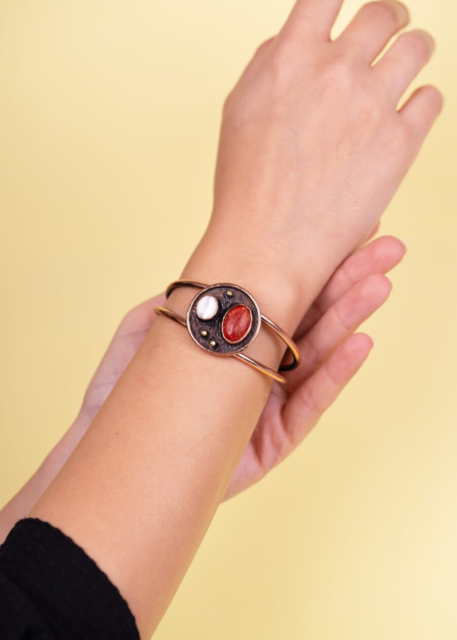 Akik & İnci Doğal Taş Detaylı Bakır Bileklik