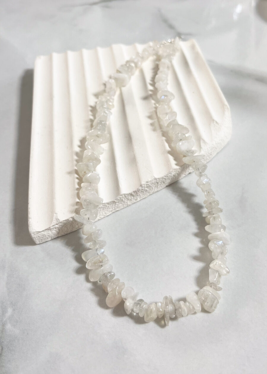 Ay Taşı Doğal Taş Gümüş Kolye