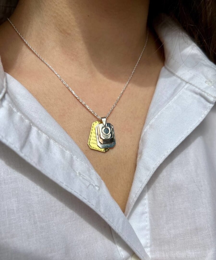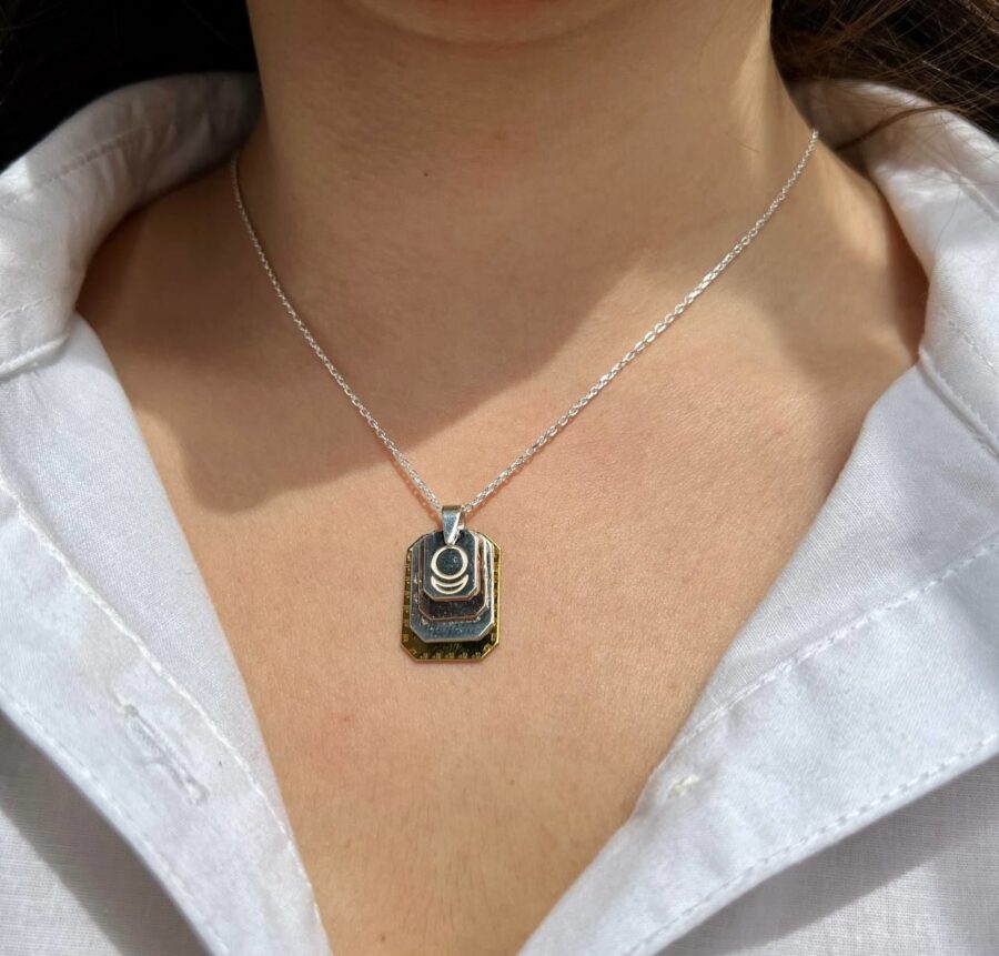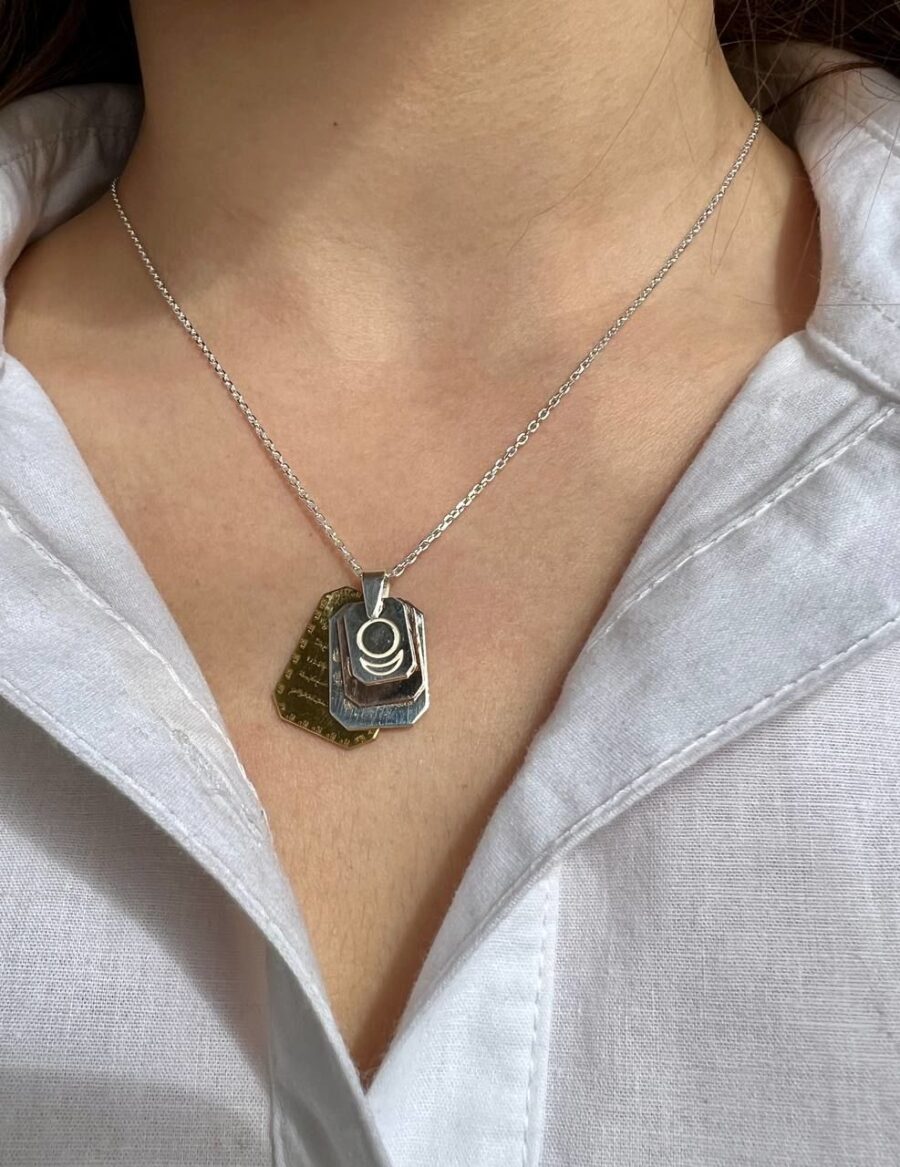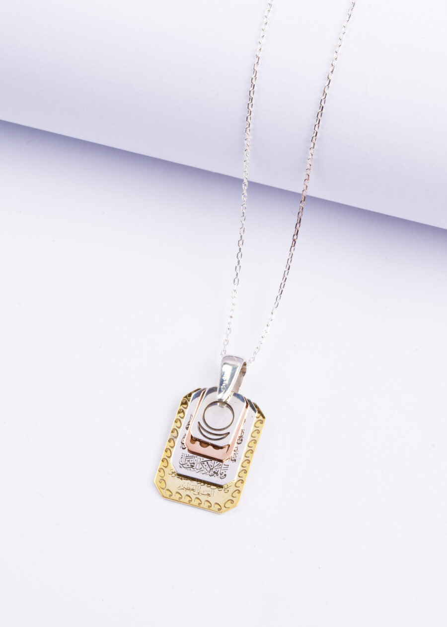 Ayetel Kürsi Nazar Dualı Allah Lafzlı ve AllatRa lı Gümüş Kolye Dikdörtgen Form