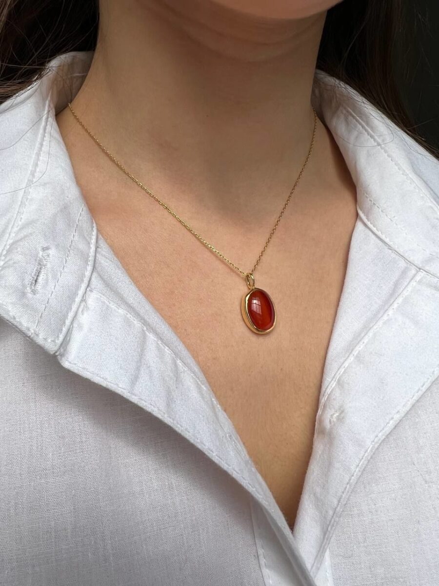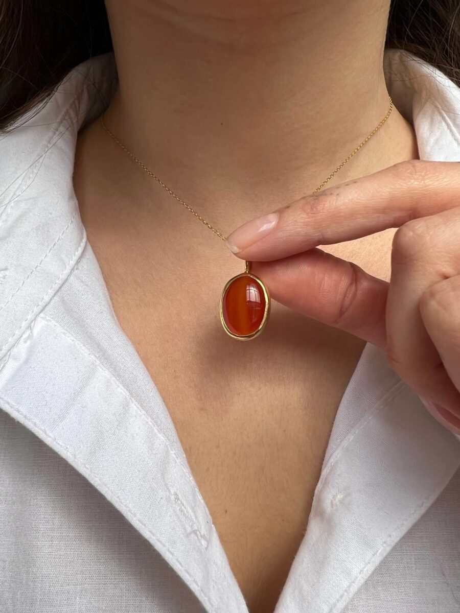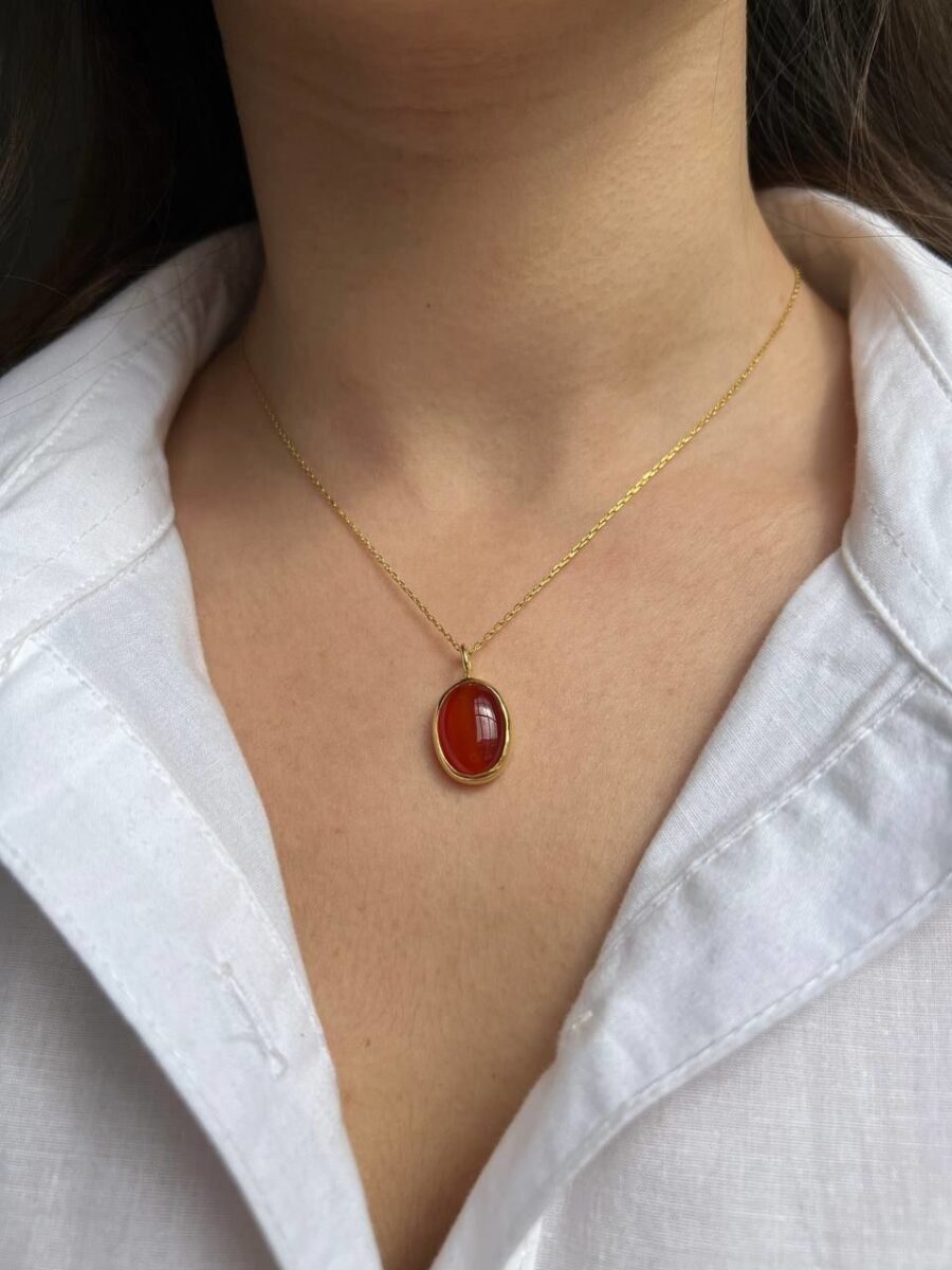Karnelyan Akik 925 Ayar Gümüş Kolye
