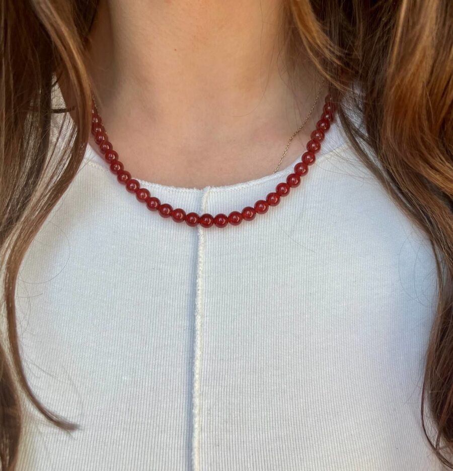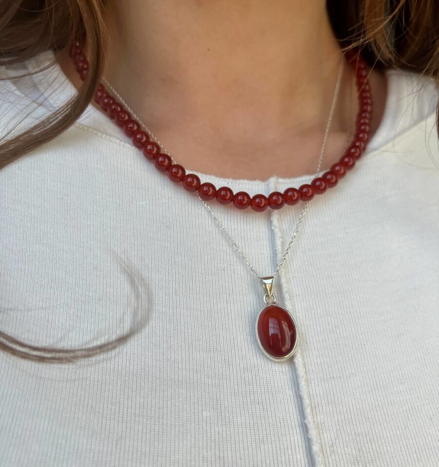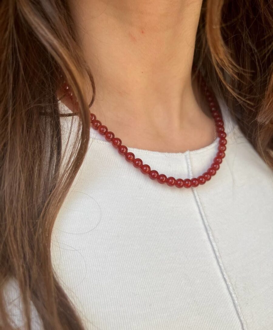 Karnelyan Akik Dizi Kolye 6mm | Gümüş Kapama
