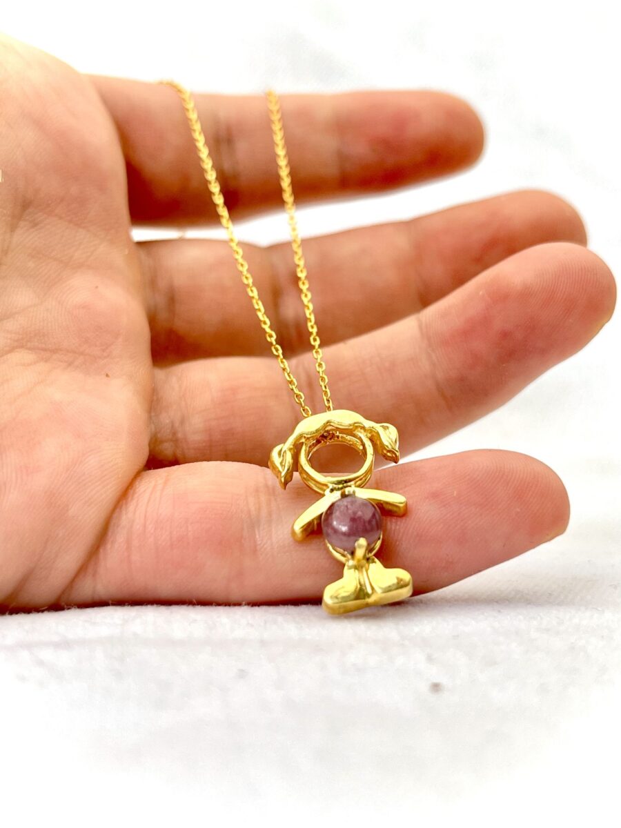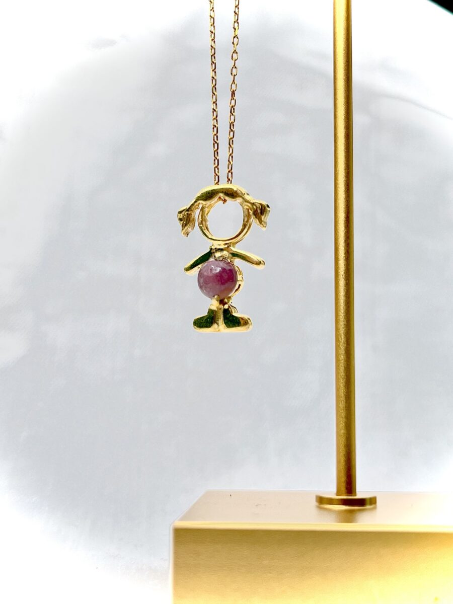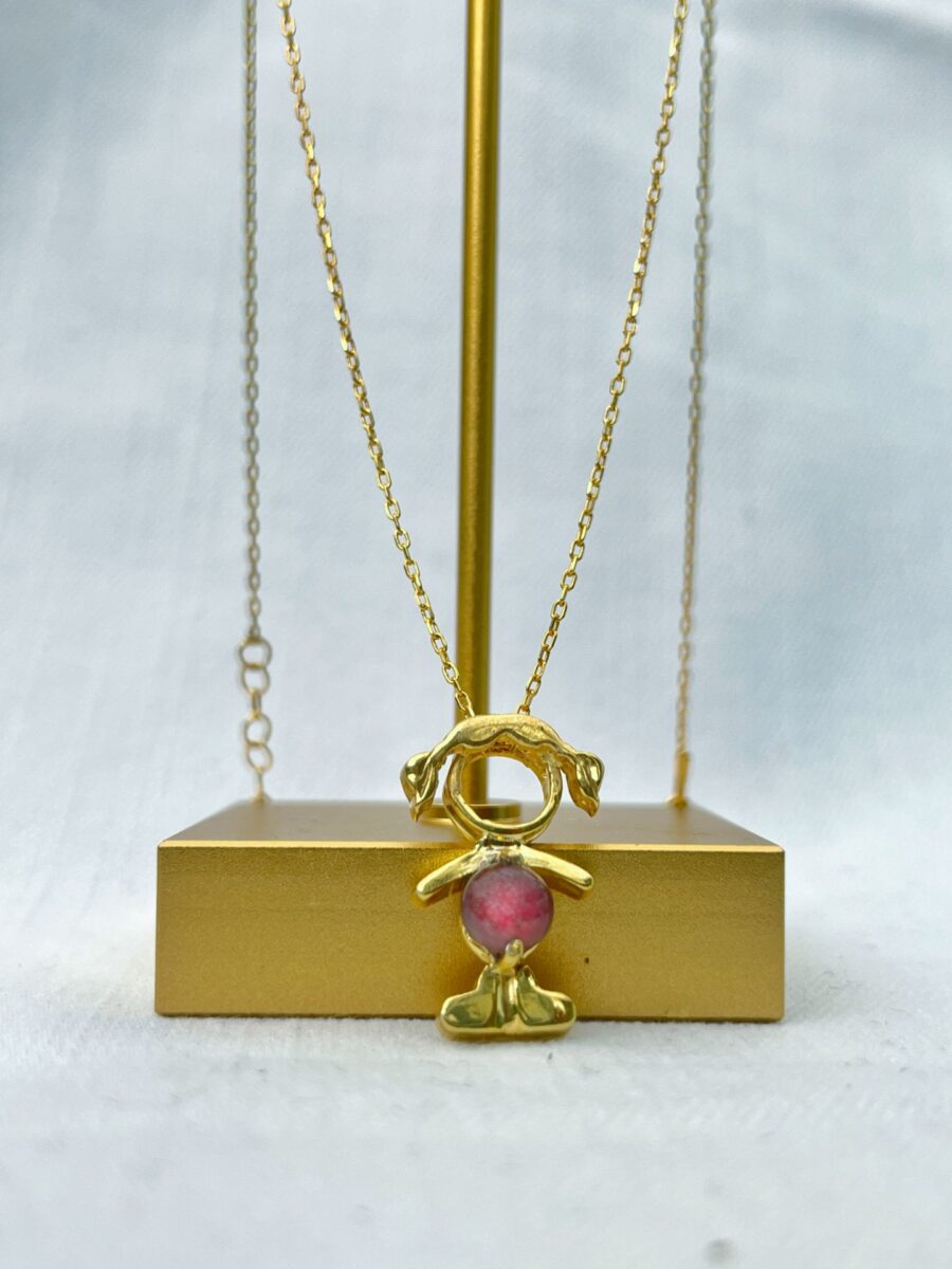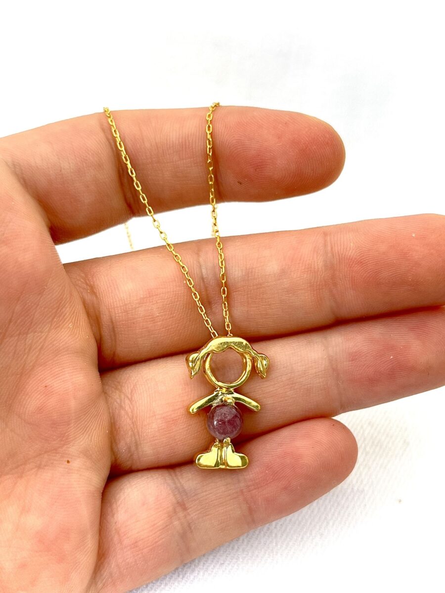 Kız Figür Pembe Turmalin Kolye | 22 Ayar Altın Kaplama Gümüş Kolye