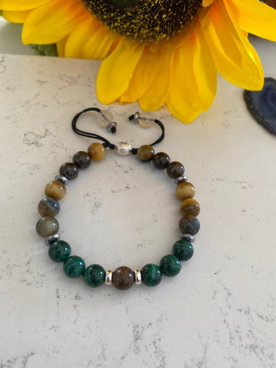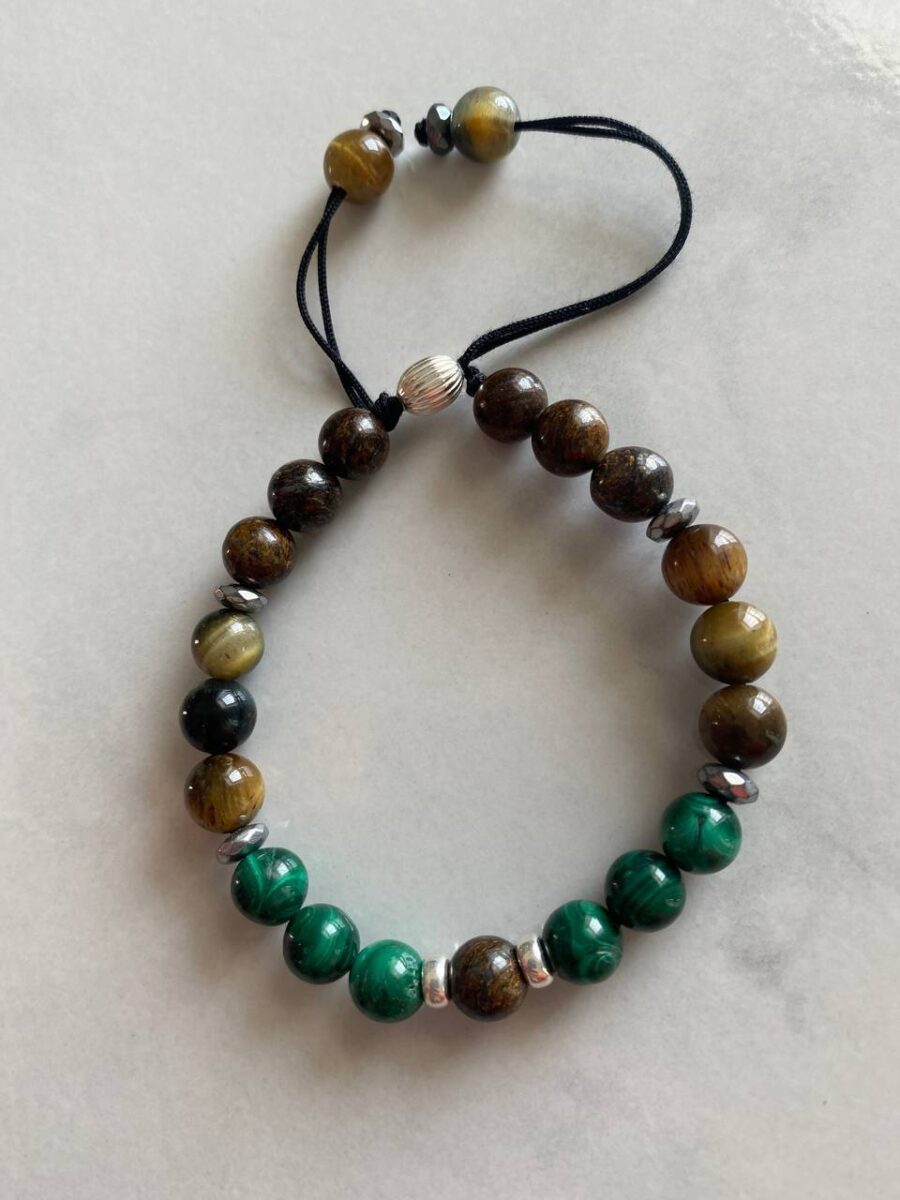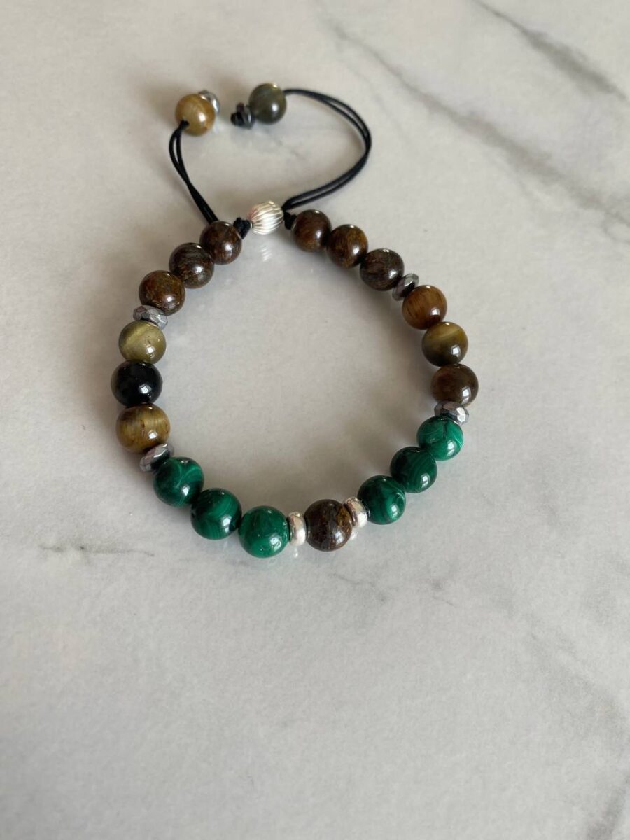 Malakit & Kaplangözü & Bronzit İpli Değişim-Güç-Para Bilekliği | Gümüş Kapama Bileklik