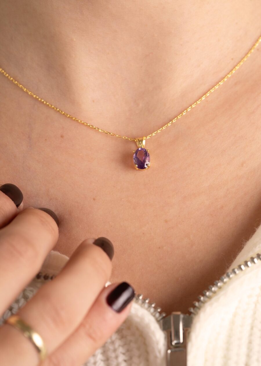 Oval Form Ametist 925 Ayar Gümüş Kolye