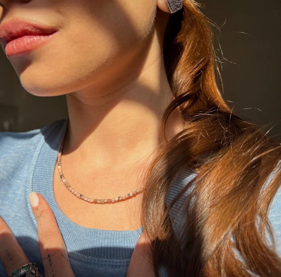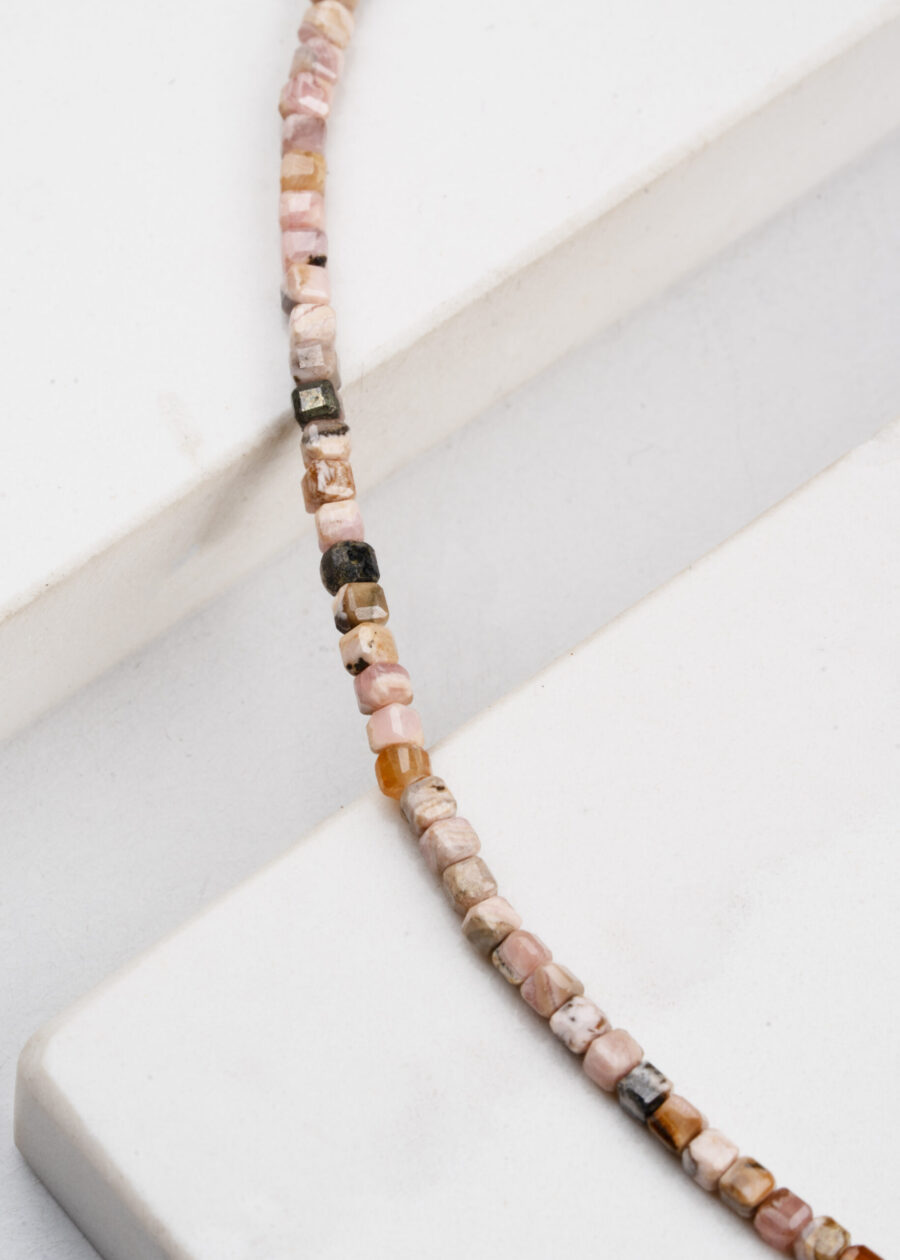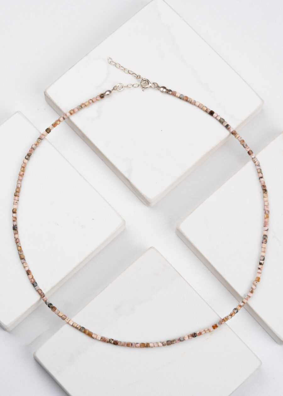 Rodokrozit Doğal Taş İnce Dizi Küp Kolye
