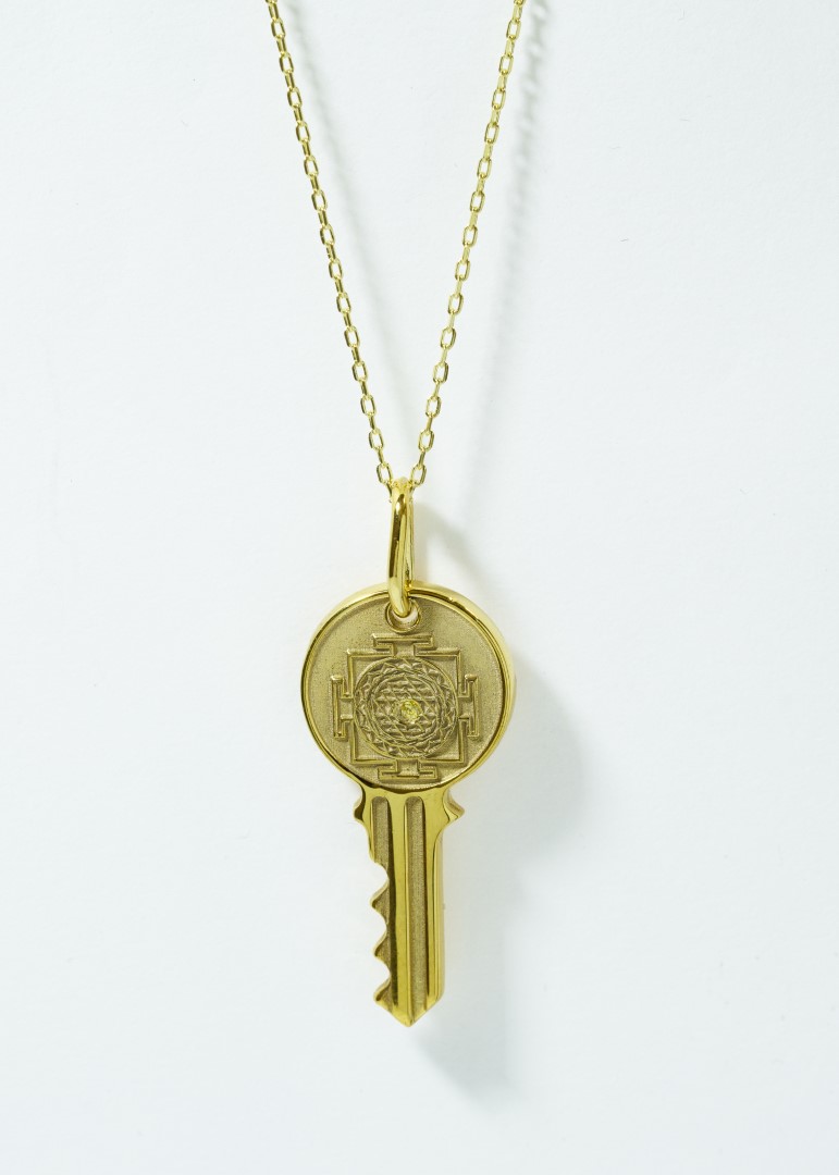 Sitrin Taşlı ve Sekanslı Sri Yantralı Özel Tasarım Anahtar Kolye | 925 ® Gümüş Büyük Boy